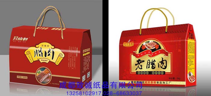 香肠、腊肉是中国人喜爱的传统食品之一,也是春节人们相互馈赠佳品的不二选择。临近春节,各商店,大型超市,百货公司,批发市场的陈列架上面都会摆放着各种样式的腊肉、香肠礼盒,产地有:湖北的、四川的、湖南的、江西的、云南的、贵州的、甘肃陇西的、陕西的等等,消费者在各种琳琅满目的商品与众多的品牌中产生购买的欲望,其包装盒设计制作是否精美起着重要的作用。