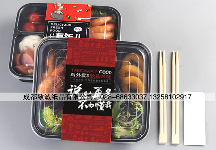 品名:成都外卖盒腰封定制,成都快餐盒封套印刷,成都打包盒标签定做